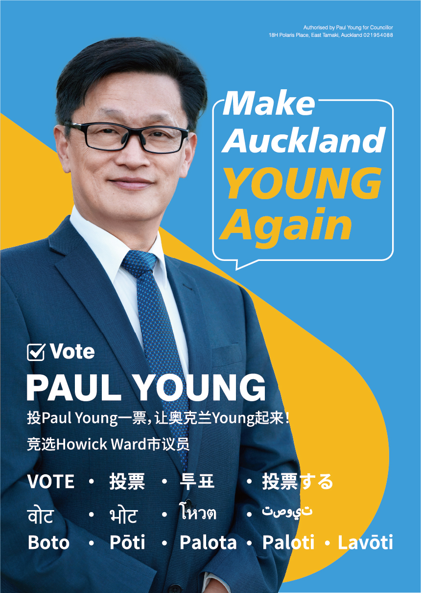 Authorised by Paul Young for Councillor, 8/119D Meadowland Drive, Howick, Auckland. Design by
