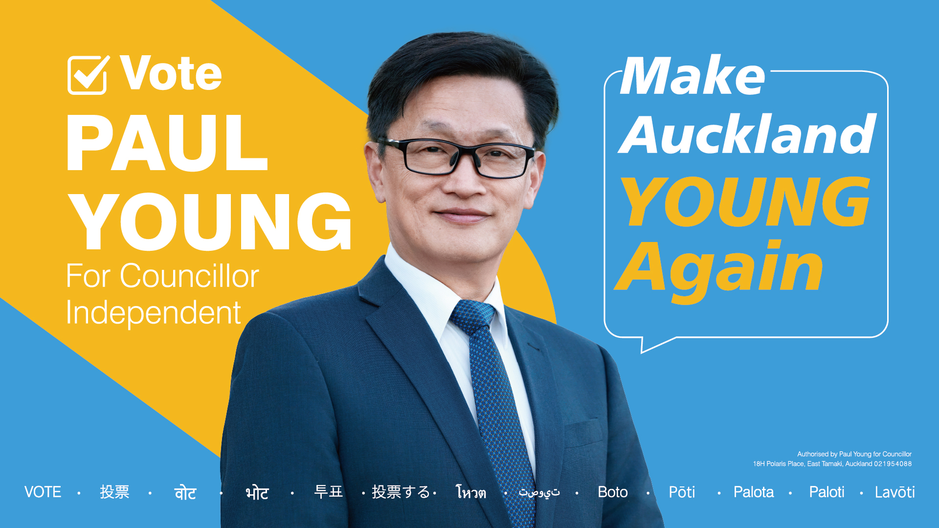 Authorised by Paul Young for Councillor, 8/119D Meadowland Drive, Howick, Auckland. Design by